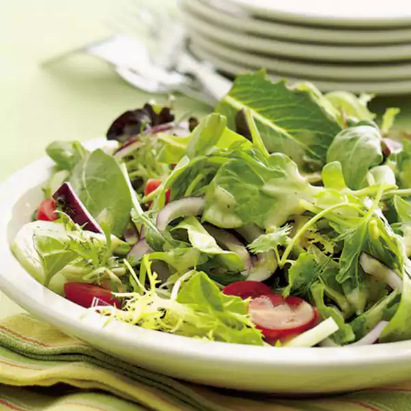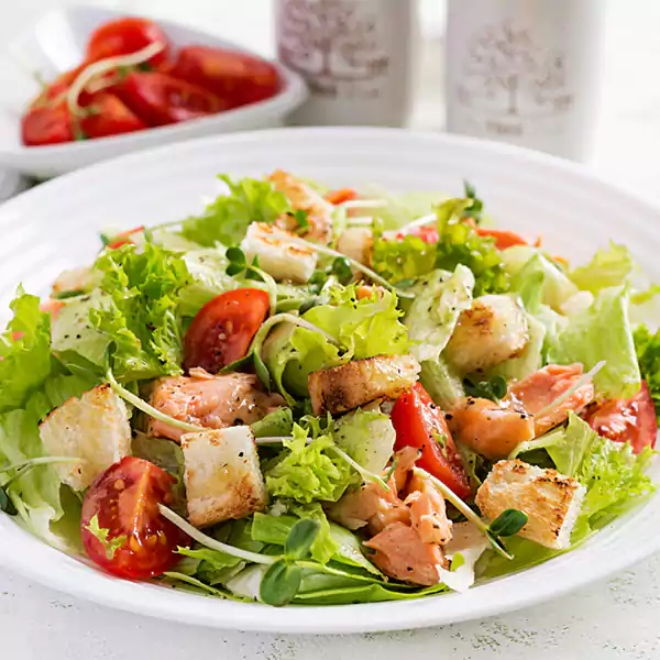 Mixed Lettuce, Cherry Tomatoes, Capsicums & Carrots In Spinners Italian Dressing.