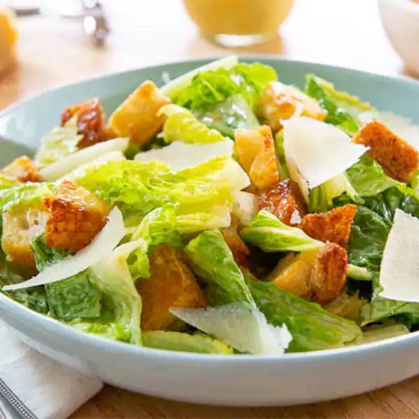 Romaine Lettuce Heart Served With Caesar Dressing, Crispy Garlic Croutons & Parmesan Cheese
