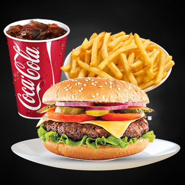 Grilled angus beef patty, spanish onions, mushroom glaze, monterey jack cheese, spinners signature sauce and supreme bun. Served with french fries and medium size soft drinks.