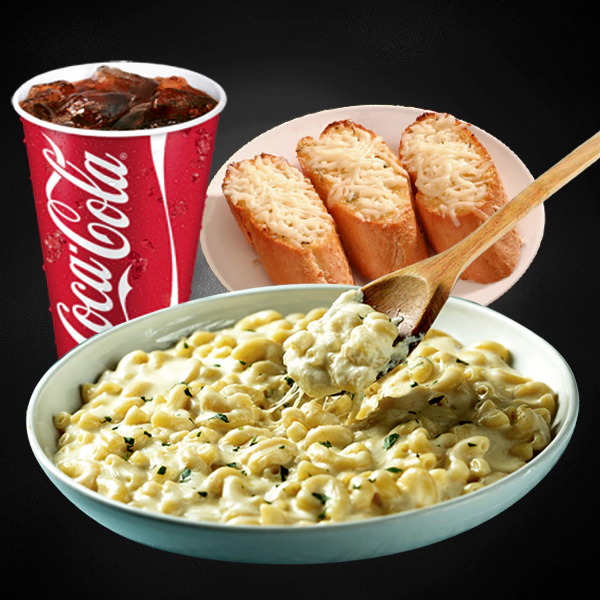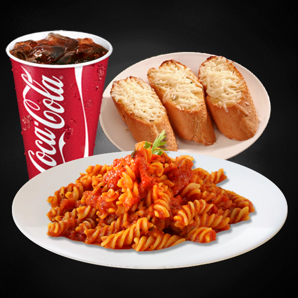 Chargrilled tender chicken steak. Served with pasta, 2 side dishes with creamy marsala sauce. Served with 2 pieces of cheesy garlic bread and medium size soft drinks.
